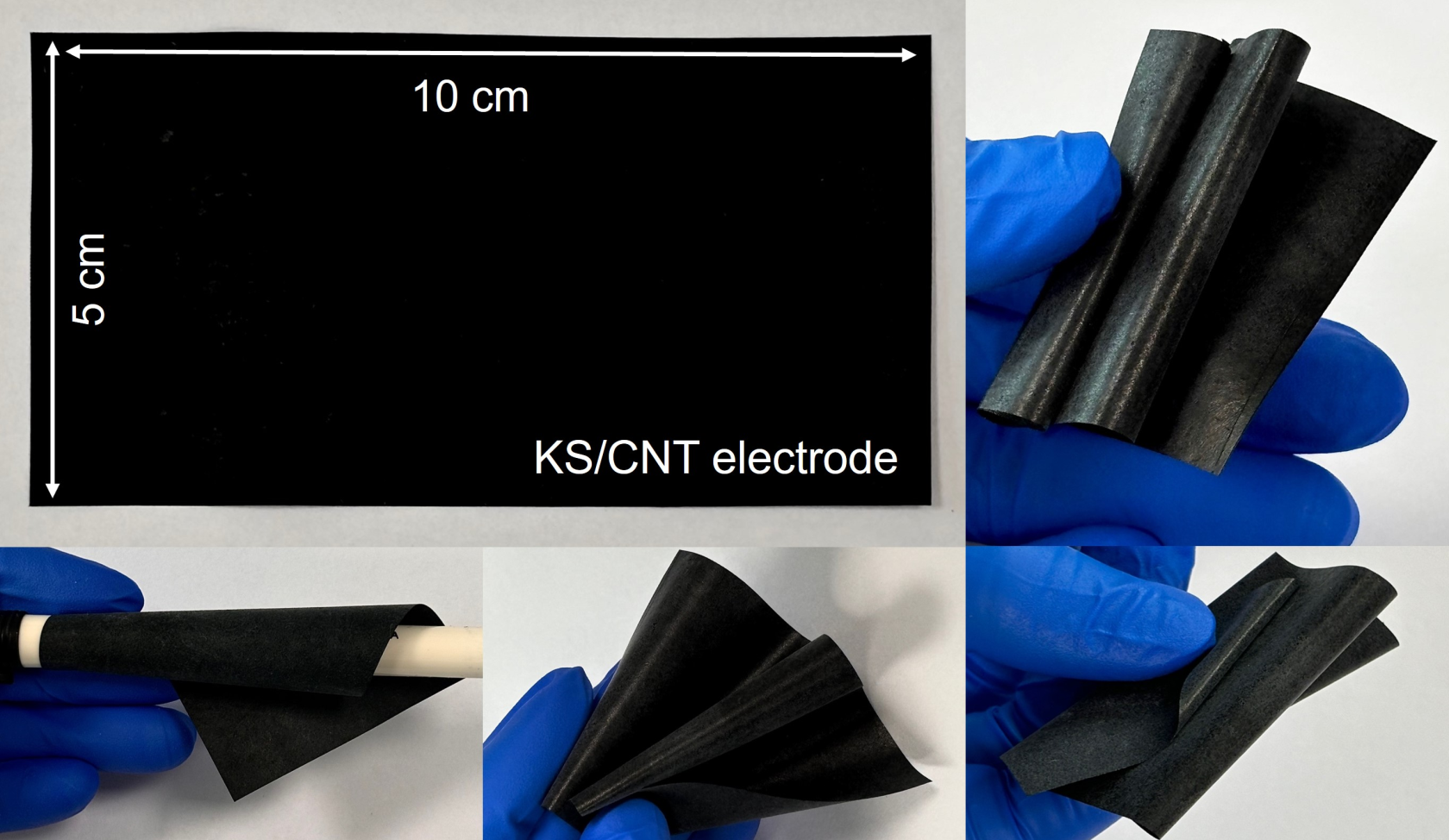 아주대 연구팀이 만든 대면적 KS/CNT 전극의 유연성을 보여주는 이미지.