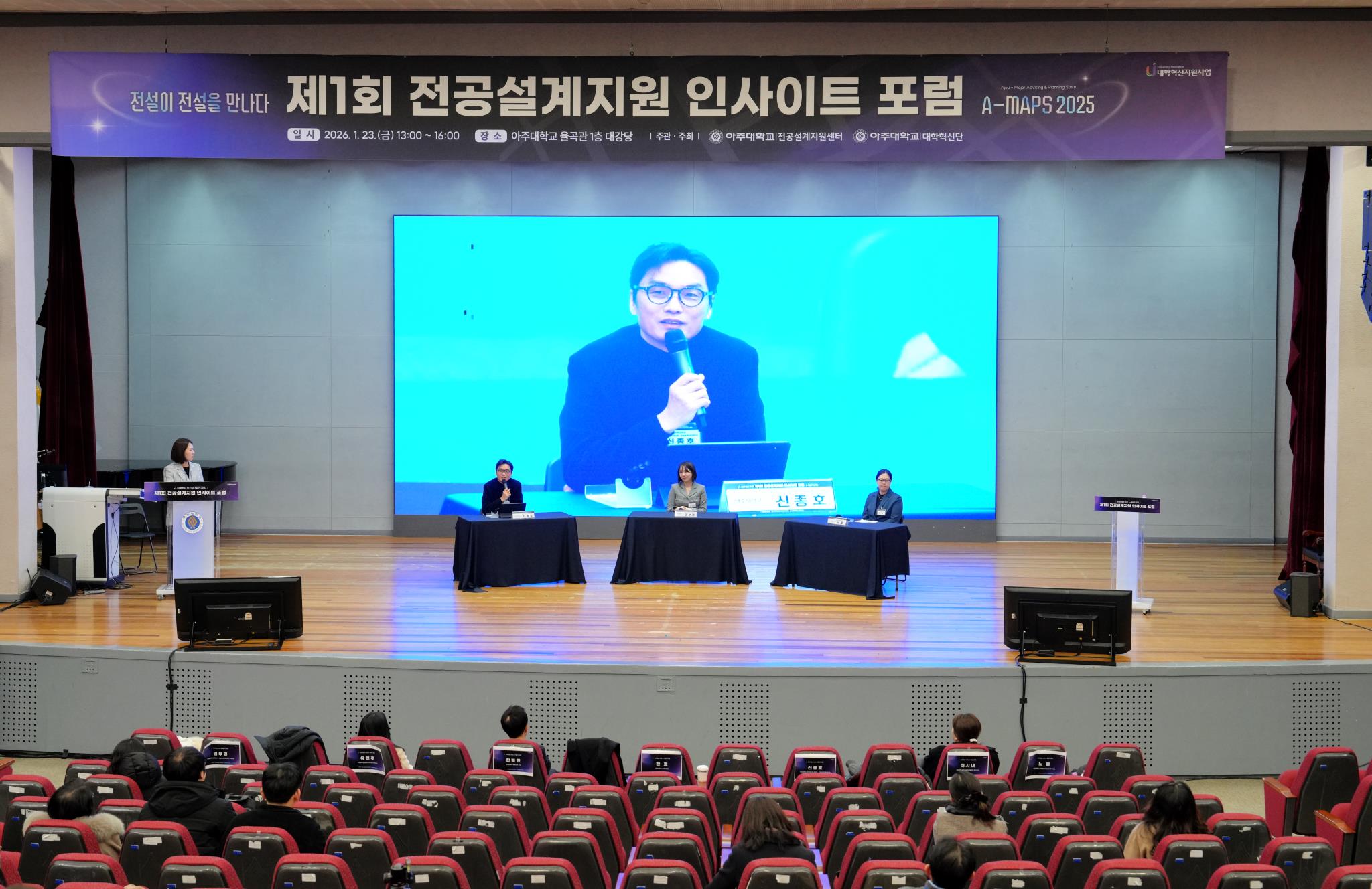 아주대는 <제1회 전공설계지원 인사이트 포럼(A-MAPS)>을 지난 23일 오후 아주대 율곡관 대강당에서 개최했다. 포럼은 ‘전공설계 지원 첫걸음: 대학 전공설계 지원 체계 구축과 운영의 실제’를 주제로 열렸다. 전국 43개 대학의 관계자 160여명이 참석했다.