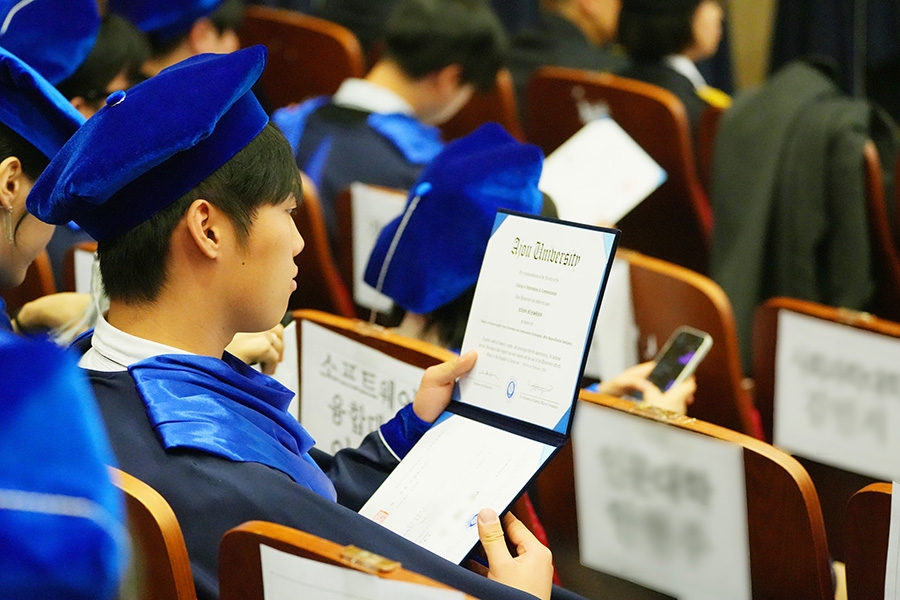 이어진 학위수여 순서에서는 박사와 석사, 학사 졸업생들에게 차례로 학위기가 수여됐다. 학부에서는 각 단과대학 대표 학생이 무대에 올라 학위를 받으며 졸업의 의미를 더했다.