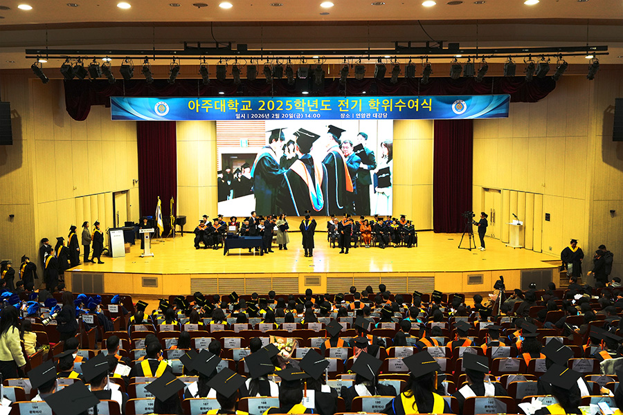 아주대학교 2025학년도 학위수여식이 20일 오후 2시 연암관 대강당에서 열렸다. 이날 졸업생들은 가족과 교수, 동문들의 축하를 받으며 대학 생활을 마무리하고 새로운 출발을 맞이했다.
