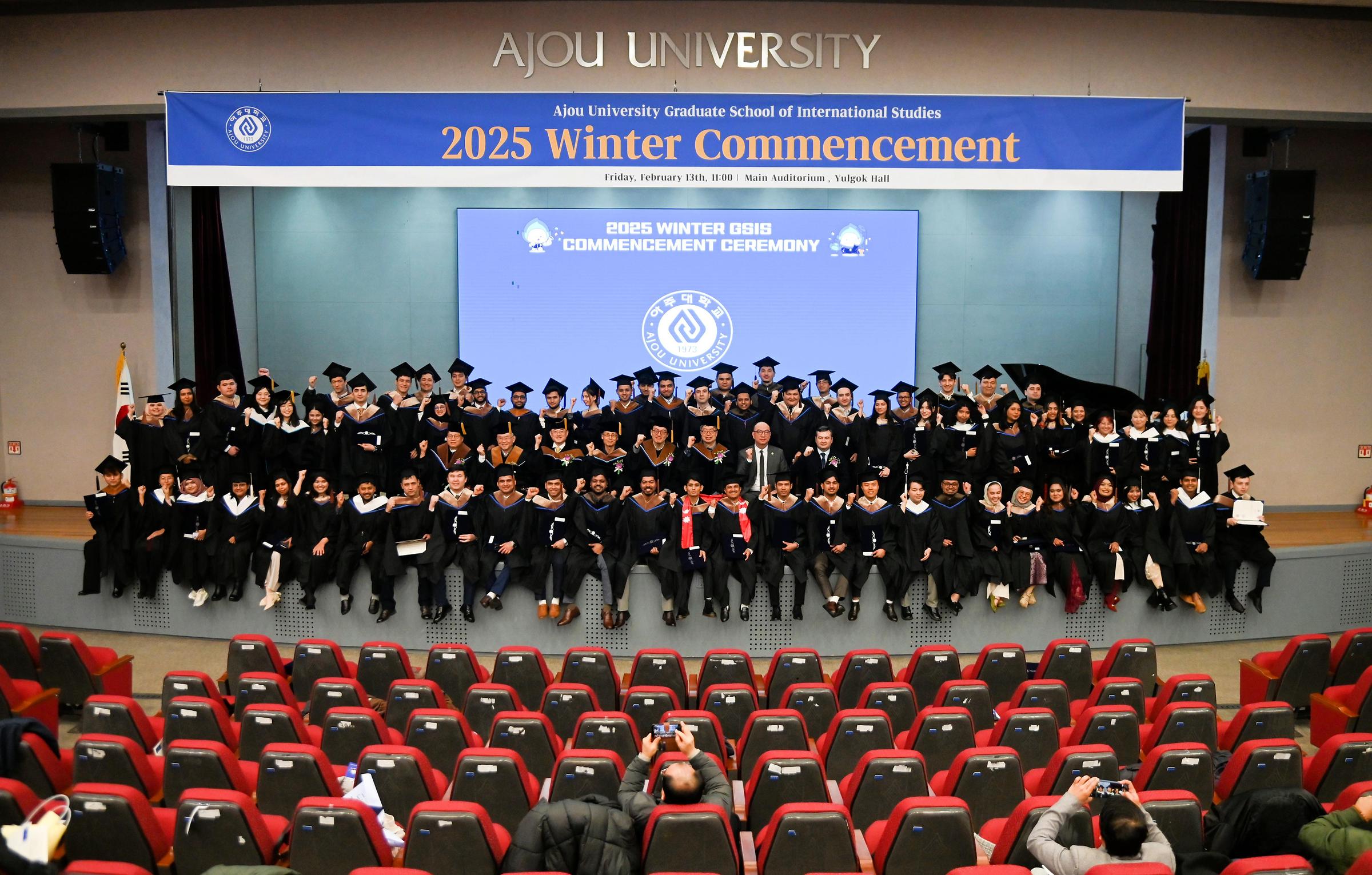 아주대 국제대학원의 ‘2025학년도 전기 학위수여식’이 지난 13일 율곡관 강당에서 열렸다. 4개 학과에서 70명의 졸업생이 배출됐다.