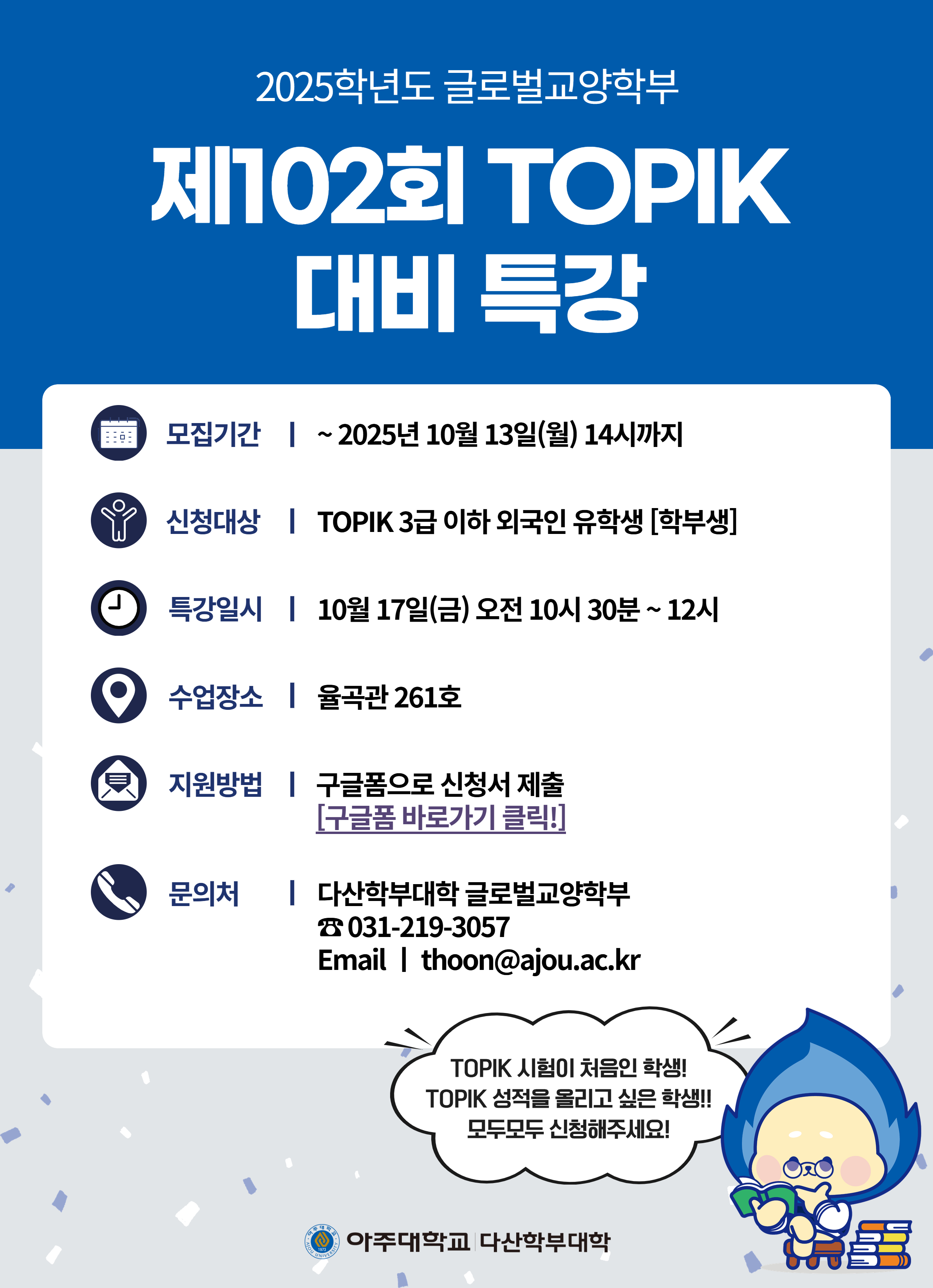 [비교과] [글로벌교양학부] 제102회 TOPIK대비 특강(~10월 13일(월) 14:00)
