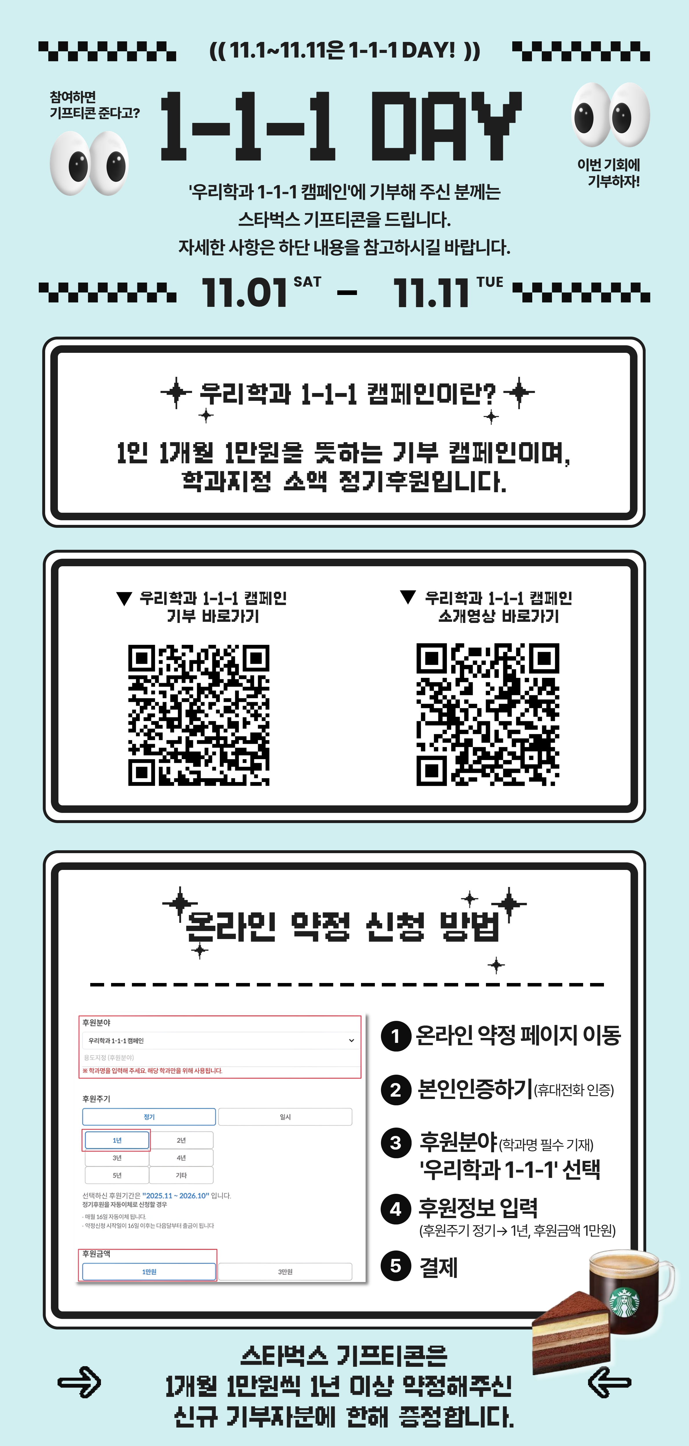 ☑️ 상단 포스터를 클릭하시면 '우리학과 1-1-1 캠페인' 상세 페이지로 이동합니다.