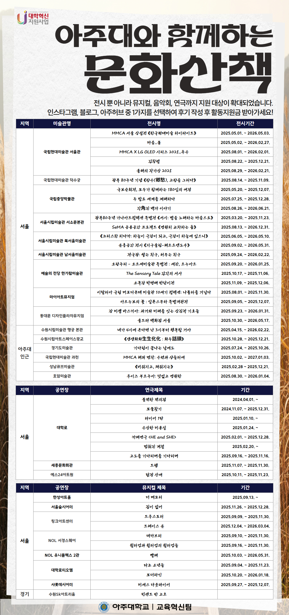 2025ํ๋ ๋๋ถํฐ ์ ์ ๋ฟ ์๋๋ผ ๋ฎค์ง์ปฌ, ์์ ํ, ์ฐ๊ทน๊น์ง ์ง์๋์์ด ํ๋๋์์ต๋๋ค.!