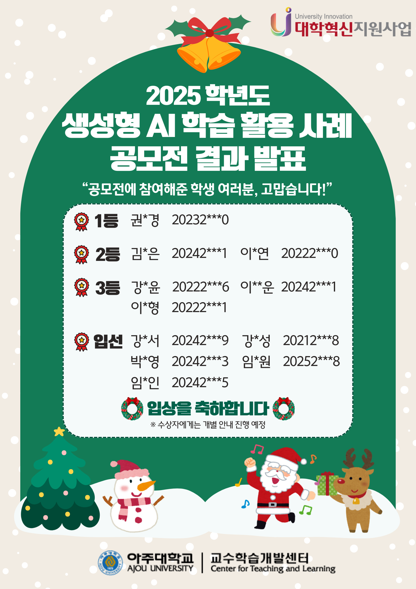 [비교과] [학습법] 2025학년도 생성형 AI 학습 활용 사례 공모전 결과 발표