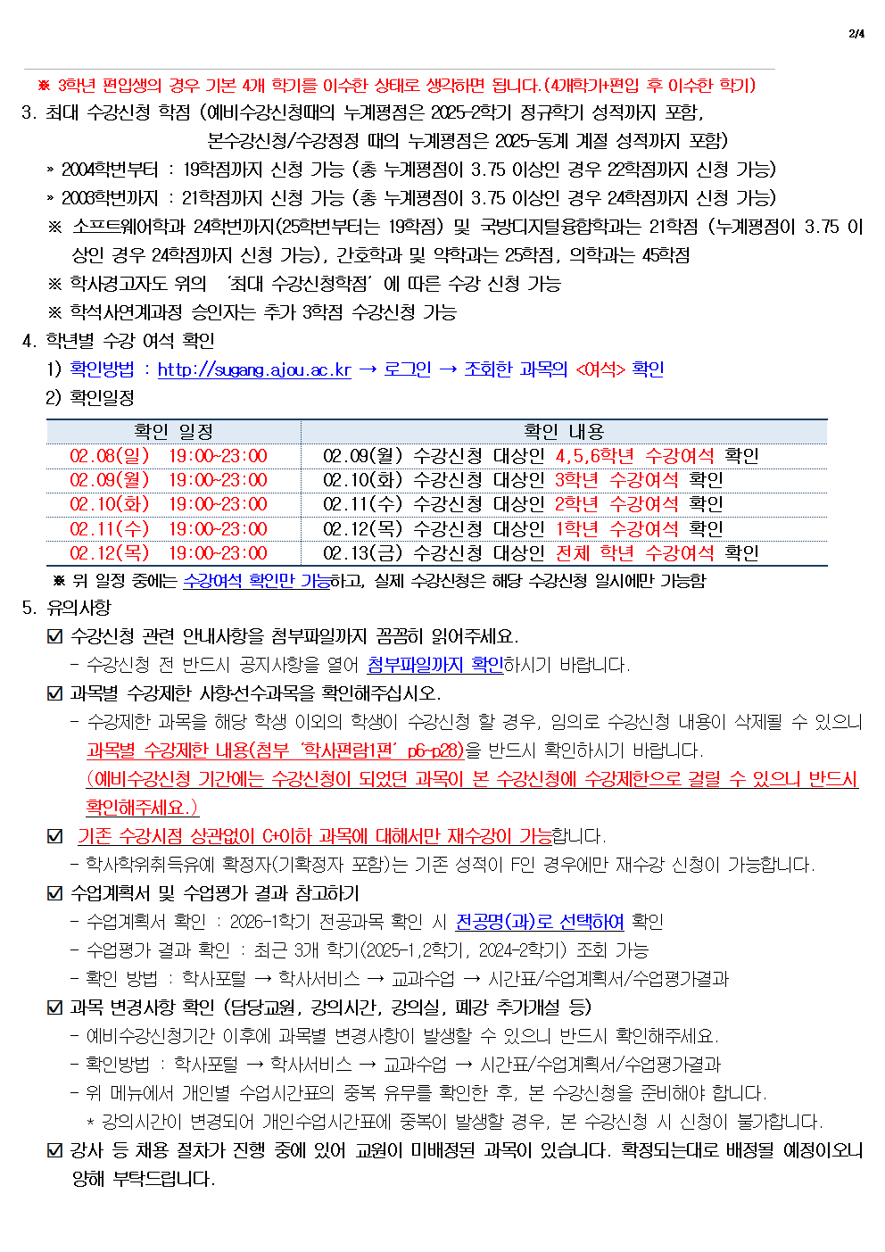 [공지] [학부]2026-1학기 수강신청 안내(02.09(월)~02.13(금))