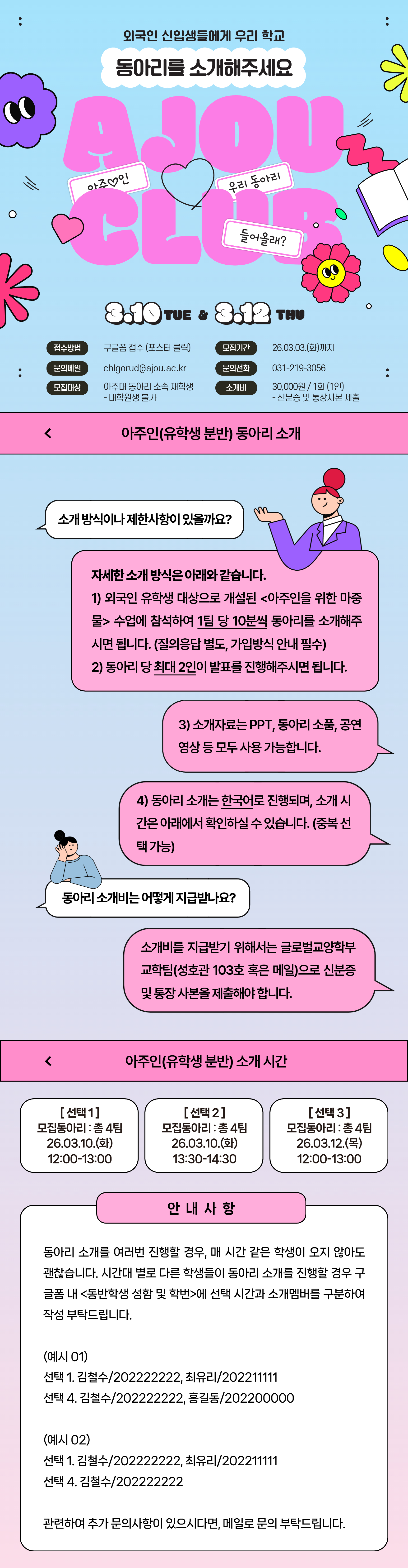 [비교과] [글로벌교양학부] 26.1학기 <아주인을 위한 마중물> 동아리 소개 모집
