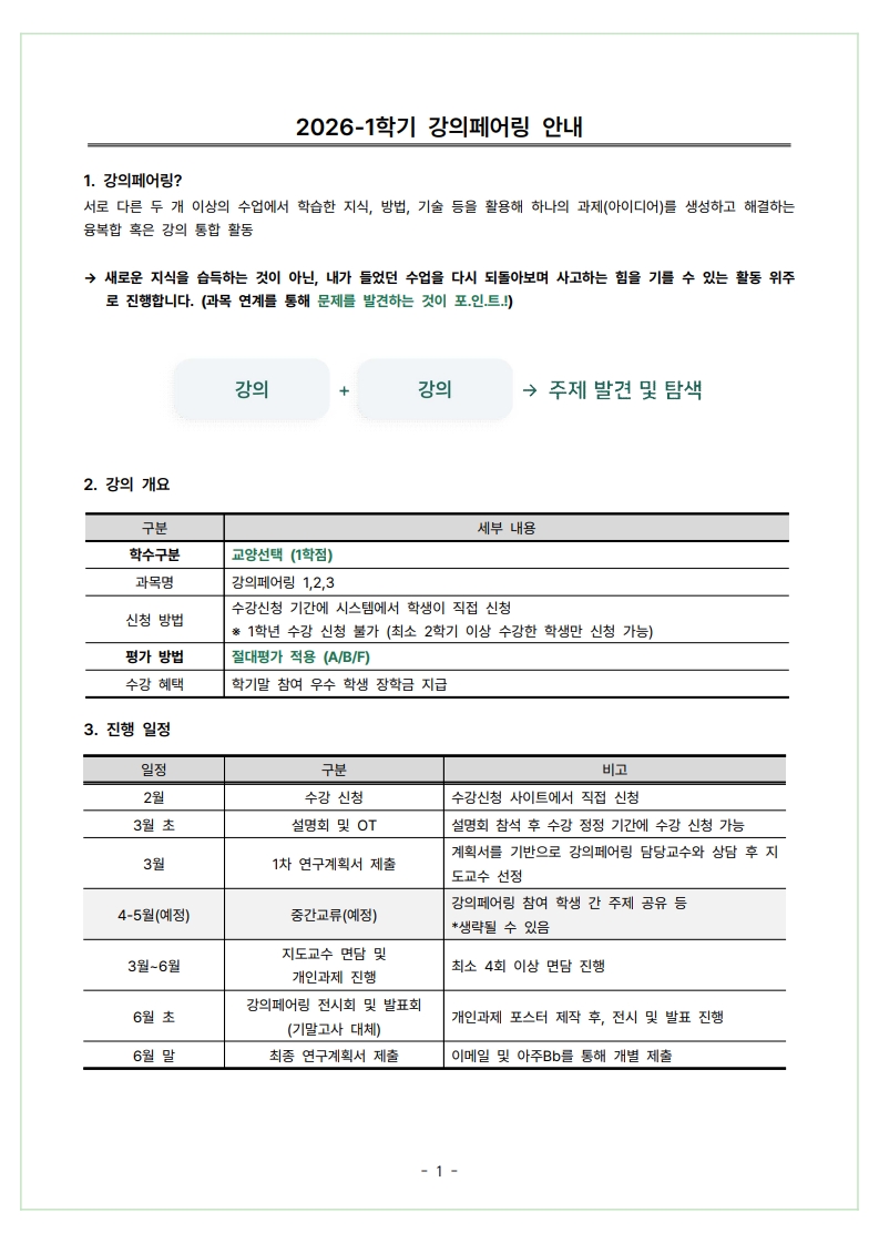 [ํ•™์‚ฌ] ๐Ÿ‘€๋‚จ์€ 1ํ•™์ ์„ ์ฐพ์Šต๋‹ˆ๋‹ค.. 2026-1ํ•™๊ธฐ ๊ฐ•์˜ํŽ˜์–ด๋ง ์ˆ˜๊ฐ•์‹ ์ฒญ ์•ˆ๋‚ด