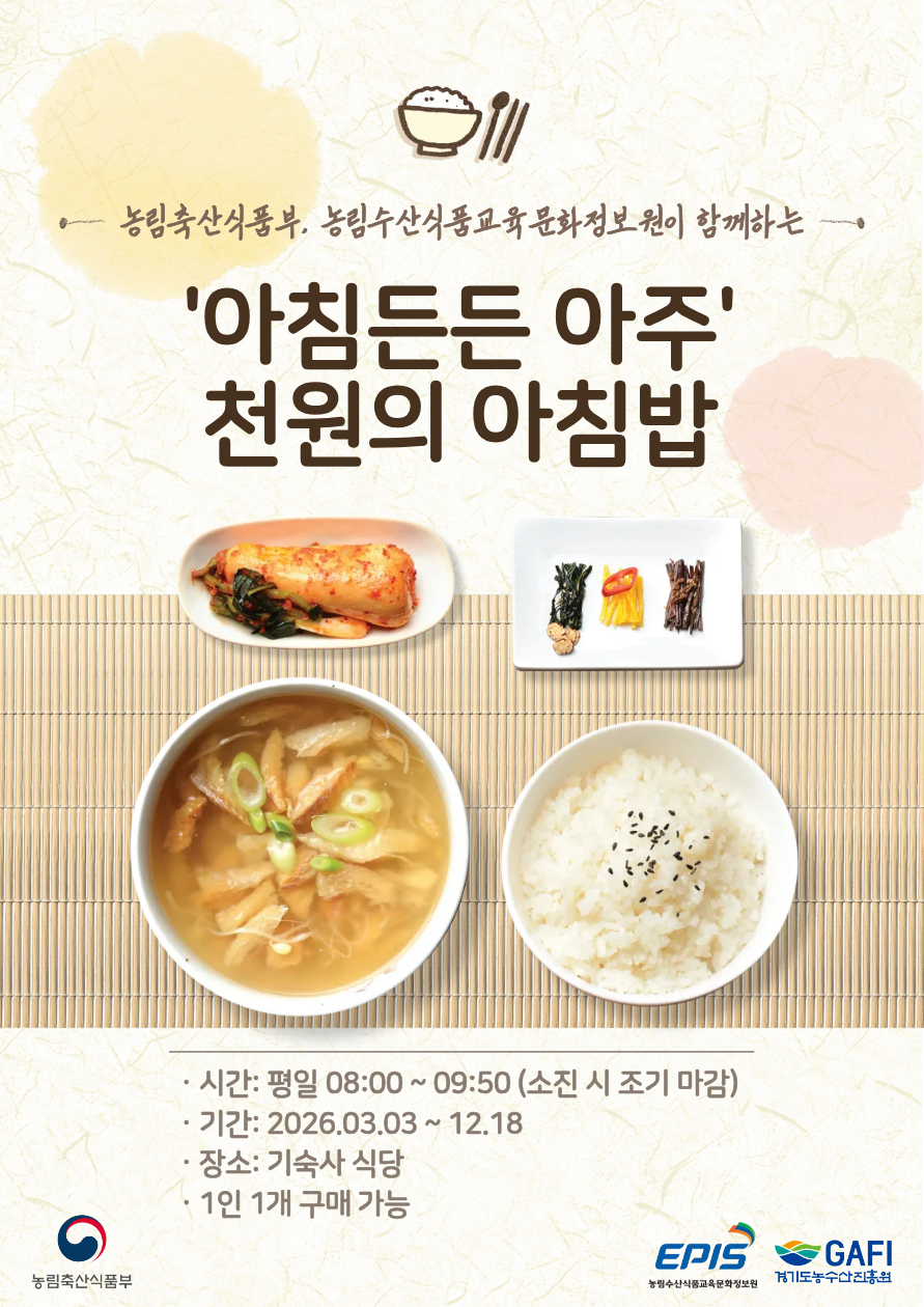 [๊ณต์ง€] 2026ํ•™๋…„๋„ ๐Ÿš์ฒœ์›์˜ ์•„์นจ๋ฐฅ๐Ÿš '์•„์นจ๋“ ๋“  ์•„์ฃผ' ์‹œํ–‰ ์•ˆ๋‚ด (2026.03.03 ~ )