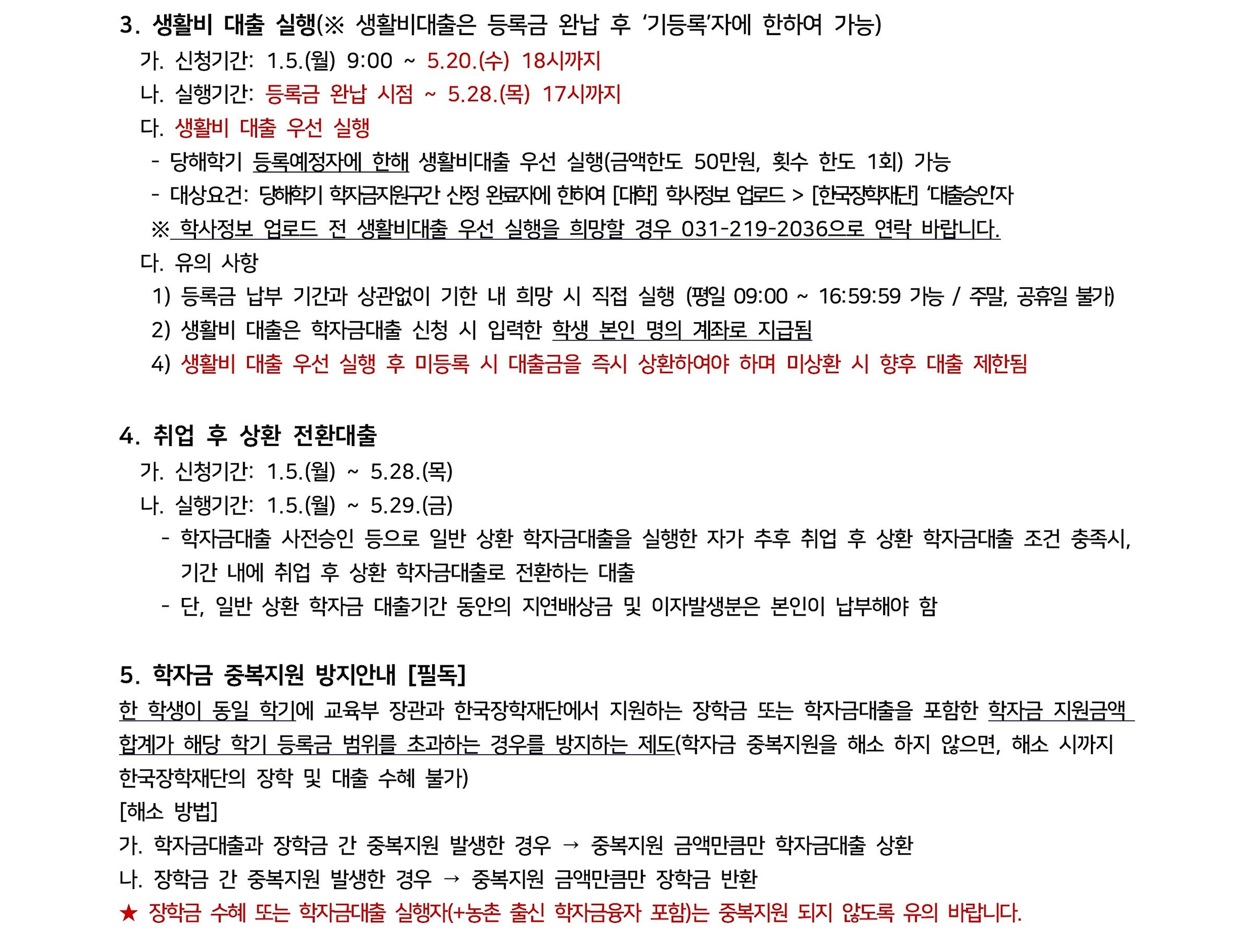 ※ 학자금 지원구간이 미산정되어 학자금 대출 심사 중인 경우, 한국장학재단 콜센터(1599-2000)로 연락하시어 사전승인을 요청하시기 바랍니다. (심사 기간 단축 가능)