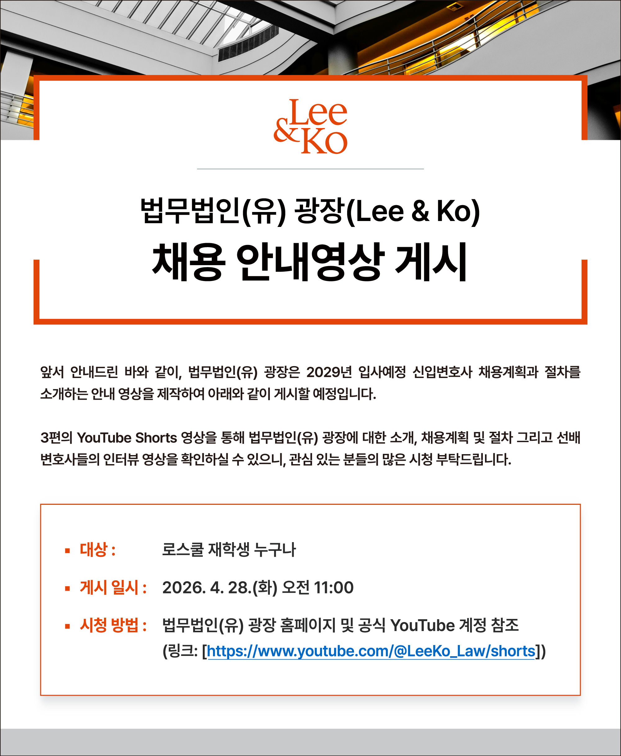 [법무법인(유) 광장] 2026 온라인 채용 안내