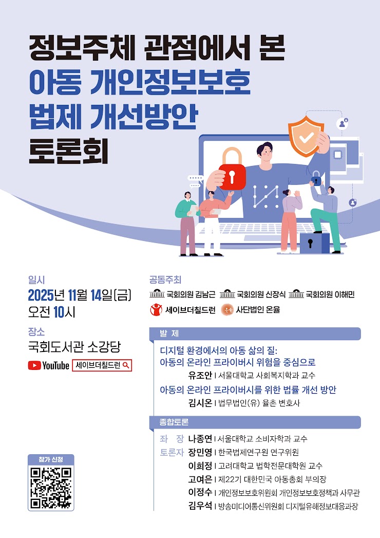 [행사] [세이브더칠드런] 정보주체 관점에서 본 아동 개인정보보호 법제 개선방안 토론회 안내